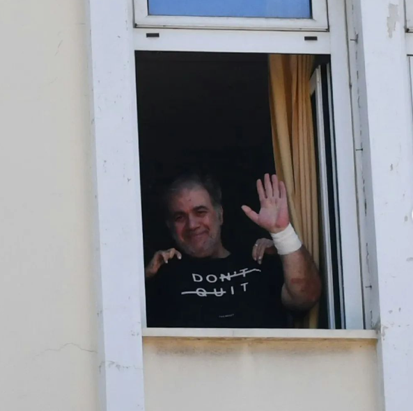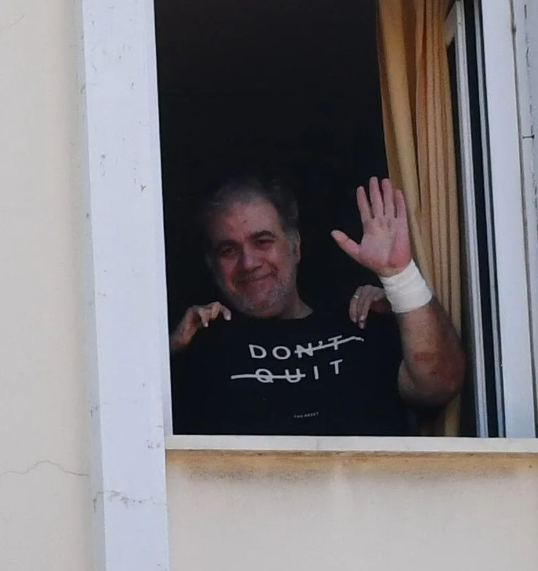 Νωρίτερα ο Δημήτρης Σταρόβας μέσα από το Τζάνειο νοσοκομείο εμφανίστηκε φορώντας t-shirt με συμβολικό μήνυμα «Don’t Quit», χαιρέτησε δημοσιογράφους και φωτογράφους, ευχαριστώντας τους για τη συμπαράσταση.