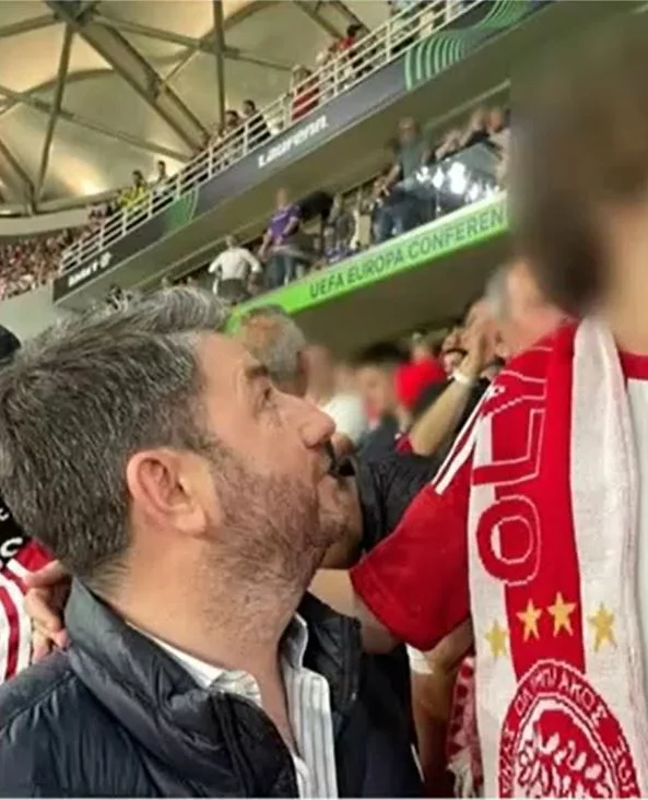 Για την κοινή εμφάνιση πατέρα και γιου σε ματς του Ολυμπιακού σχολίασε με χιούμορ: «Αμάρτησα για το παιδί μου. Τι να κάνω; Η μαμά του εκμεταλλεύτηκε τα χρόνια που ήμουν στις Βρυξέλλες και τον έκανε Ολυμπιακό. Υπάρχει και κάτι φοβερό. Είχαν πάει μαζί στα ημιτελικά και μου λέει ένας φίλος μου που τους είδε ότι δεν φορούσε μόνο ο γιος μπλούζα του Ολυμπιακού, φορούσε και εκείνη, γιατί είναι φανατική. Την παίρνω τηλέφωνο και της λέω: ”πήγες 43 χρονών με την μπλούζα του Ολυμπιακού στο γήπεδο;”.